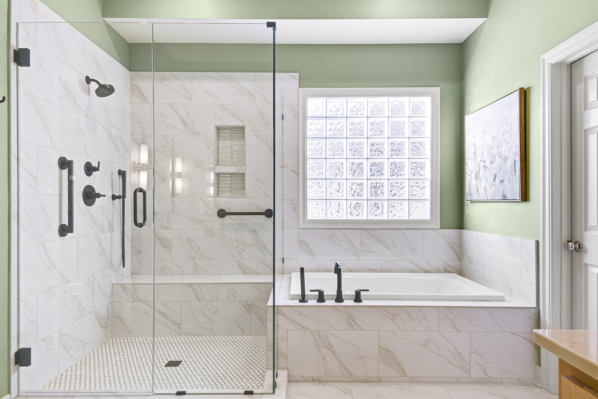 Retreat-like spaces with premium fixtures, custom tile, and ambient lighting.